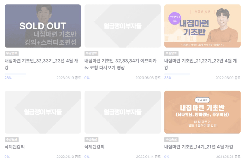 그 후로도 매년 비슷한 시기만 되면 마음 한 켠 미뤄두었던 내 집 마련의 과제가 불쑥 올라와 내 집 마련 기초반을 3월 신청하여 4월 수강 하는 패턴을 이어갑니다. 그런데 지금 봐도 창피한 건 2021년, 2022년, 2023년 3번의 내마기 완료 한 적이 한 번도 없었습니다.