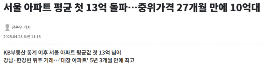 “서울 아파트는 이제 너무 비싸서, 제 돈으로는 불가능하죠?”