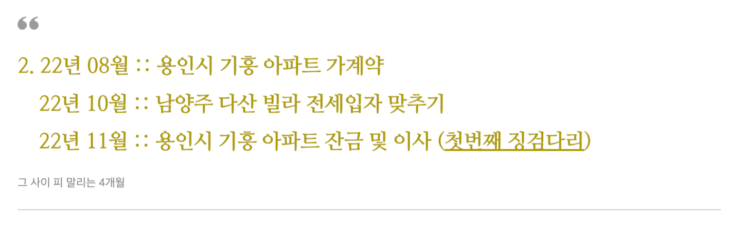 당시 다산 신도시에 거주하면서 제가 거주했던 신축 빌라촌은 주변에 아파트 대단지가 몰려 있어 그 단지들의 인프라를 함께 이용할 수 있었습니다. 거주 편의성과 만족도가 너무나도 좋았으며 주변으로 신축 단지들을 계속 짓고 있었고 도보 5분 거리에 8호선 다산역을 공사하고 있어 거주 쾌적도가 더 높아지는 상황이였습니다. 하지만 아파트가 아닌 그것도 빌라에 전세로 사는 것이 그 당시에는 어떤 의미인지 조차 인지할 수 없었습니다. 저는 그 당시 입지가 무엇인지 전세가율이 높은게 왜 좋은지 조차도 몰랐던 그저 청약에만 목 매달던 완전 초초초 부린이였습니다. 자본주의에 너무나도 무지했던 제 자신 정말 반성합니다. 그렇게 주변 아파트 인프라에 취해 1년을 거주한 뒤 22년 07월 운명처럼 월부를 알게 되었고(이건 정말 운명입니다. 제가 월부 옛날 아지트 근처 마카롱가게에서 일했거든요 ㅎㅎㅎ) 내집마련 기초반(24기)을 신청하게 됩니다. 이때부터가 저의 새로운 인생이 시작되었다고 말할 수 있습니다. 강의를 듣고 22년 08월 첫번째 징검다리인 용인시 기흥구 19년식 신축 브랜드 대단지로 이사를 가게 되었습니다.