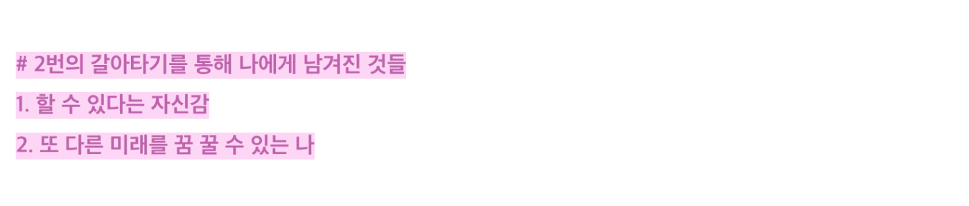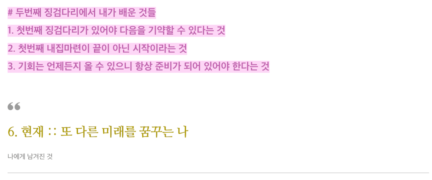 되돌이켜 보니 그 당시에 이러한 행동들이 저에게 다음 징검다리를 건너게 해줄거라고 생각치도 못했던 것 같습니다.