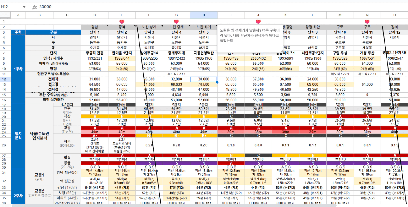 남은 이번주 동안은 저번주에 분임한 노원구 위주로 후보단지 좀더 찾아보고, 노원구 분임한거 정리해볼 것.
