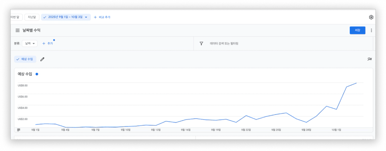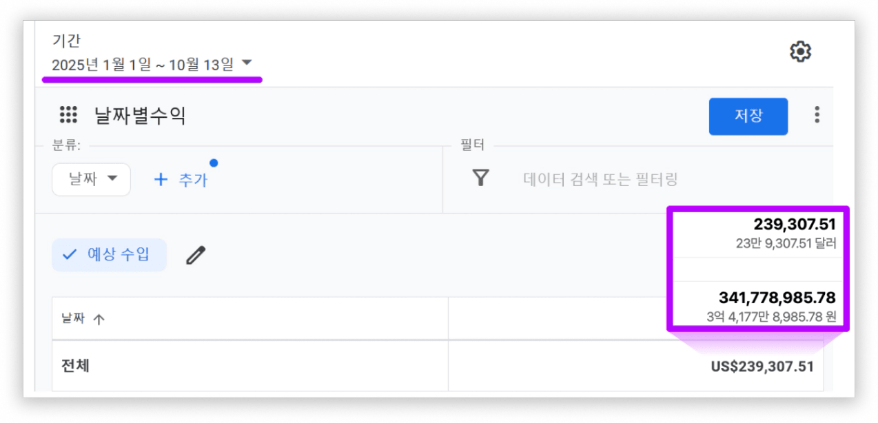 그랬더니 정말 거짓말 같이 계정 수익이 딱 0원으로 돌아갔어요.