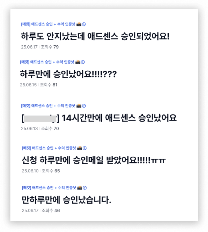 저는 글은 평균만 써도 승인받을 수 있도록 사이트 구조를 설계하거든요.