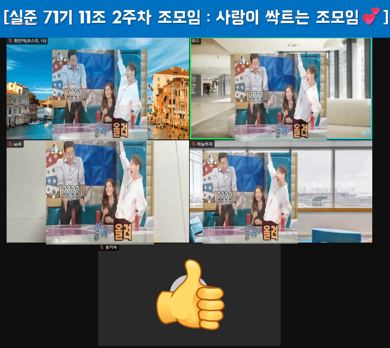 매번 귀참으로 하는 말썽쟁이지만 극 T의 조장님께서 그래도 귀참이 어디냐며 다독여 주셨다. 그래도 우리 조원들의 얘기에 귀 기울이고 내 생각은 어떤지 마음으로 정리하고 나 또한 질문에 대한 답변을 채팅으로나마 남기며 최대한 참석했다.