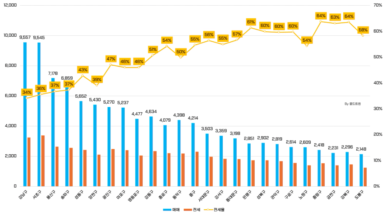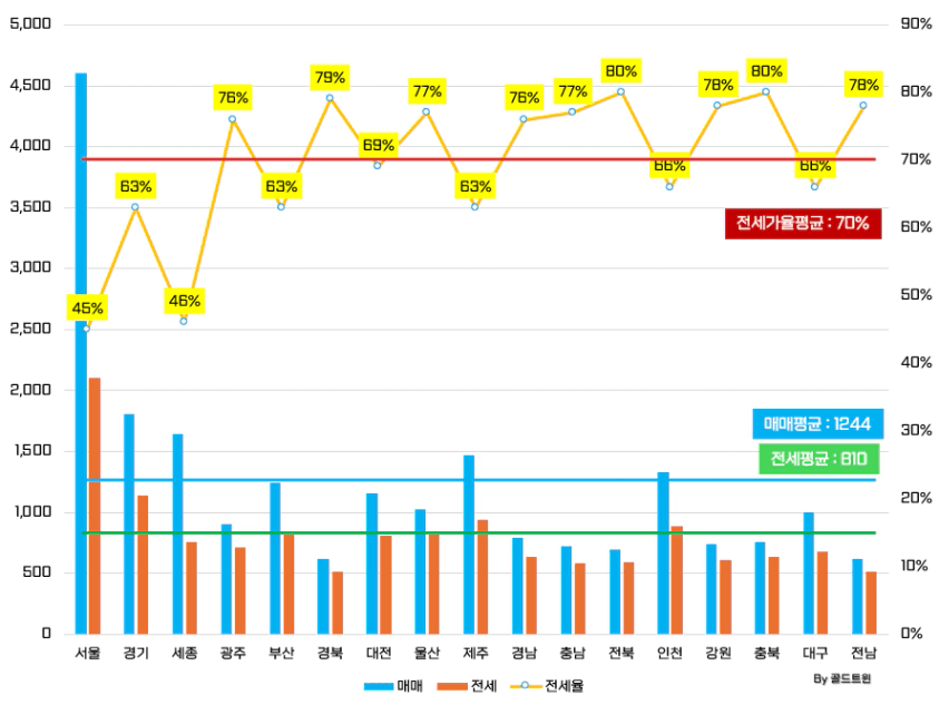 전세가가 크게 오르는 모습을 볼 수 있습니다.
