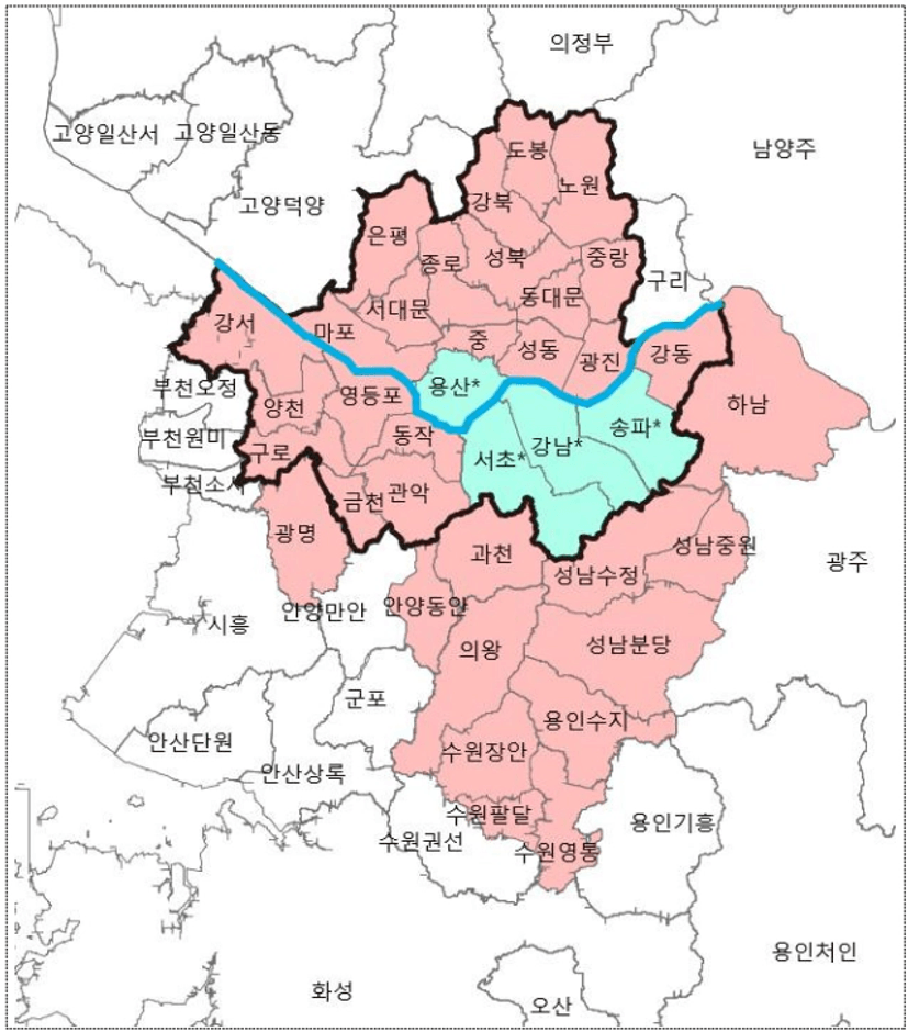 서울 전역을 포함해 경기도의 주요 도시들이 대거 규제 지역으로 묶였습니다 .