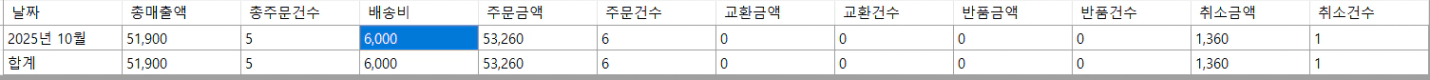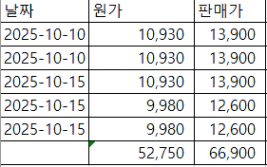 취소건을 제외하고 제가 엑셀에서 정리한 원가 및 판매가금액은 첫번째 사진과 같은데,