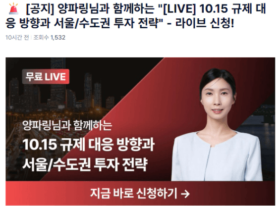 ㅇ (무료LIVE) 10.15 규제 이후 서울 수도권 투자전략 라이브 : https://weolbu.com/s/Hr3HxQMtbC