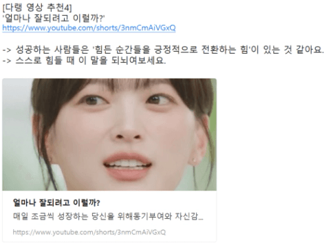 매순간 힘든 순간들을 좋을 결과가 있을 것이라는 긍정으로 전환 할 수 있는 것 같습니다.