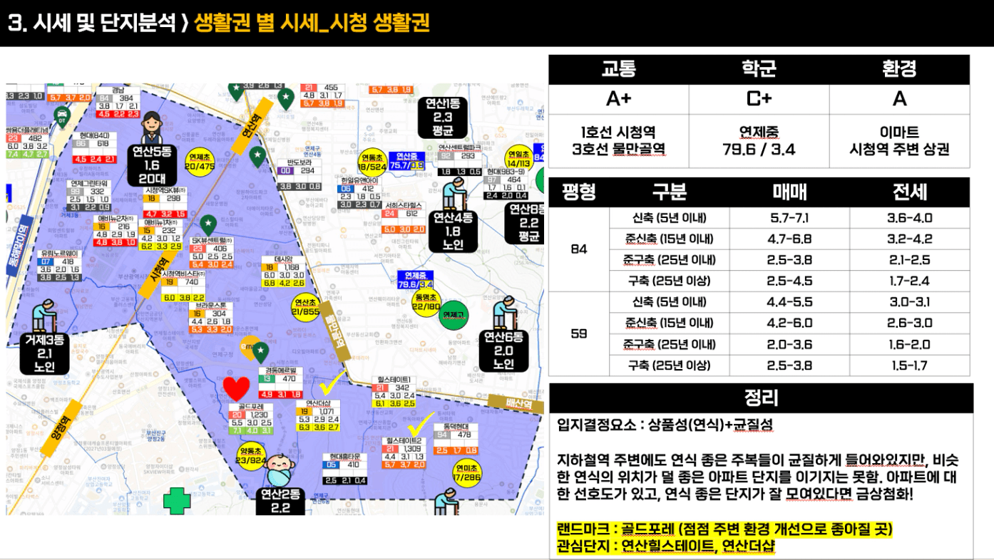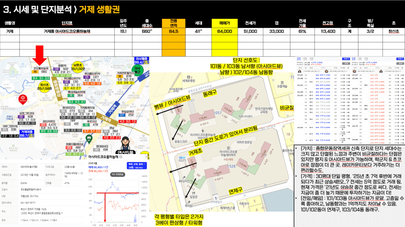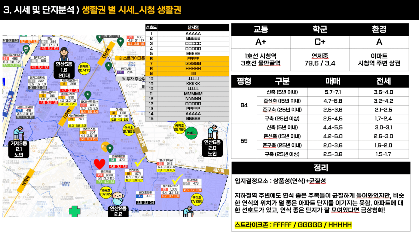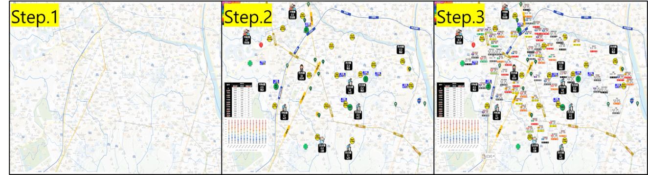 입지지도에 단지별 시세를 올린 시세지도에서(Step.3),