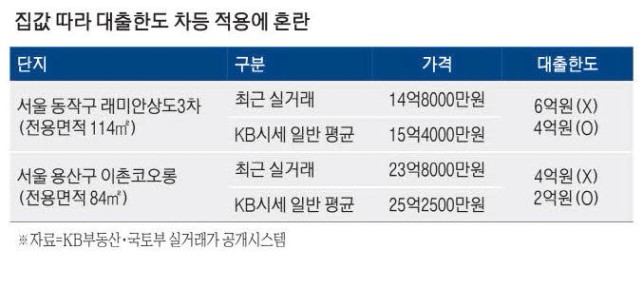 16일부터 이미 적용된 주담대 시가 차등 적용 규제에서,