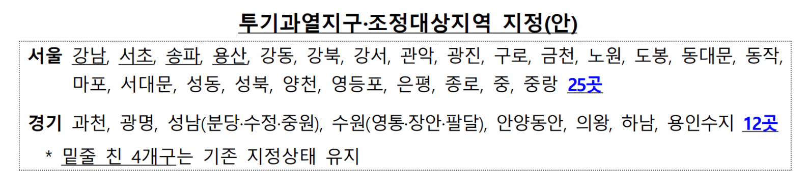 또한 이번 대책으로 이미 투기과열지구, 조정대상지역으로 지정된