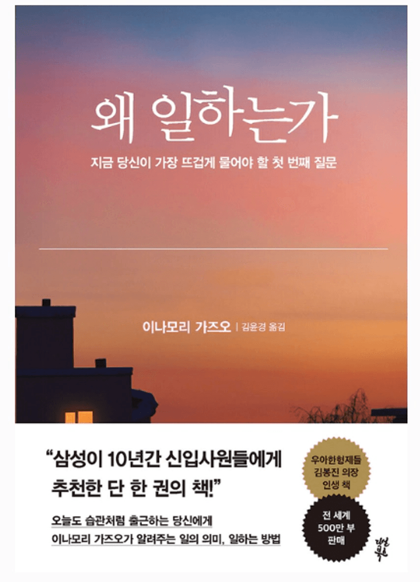 책 제목 (책 제목 + 저자) : 왜 일하는가- 지금 당신이 가장 뜨겁게 물어야 할 첫 번째 질문/ 이나모리 가즈오, 김윤경 옮김.