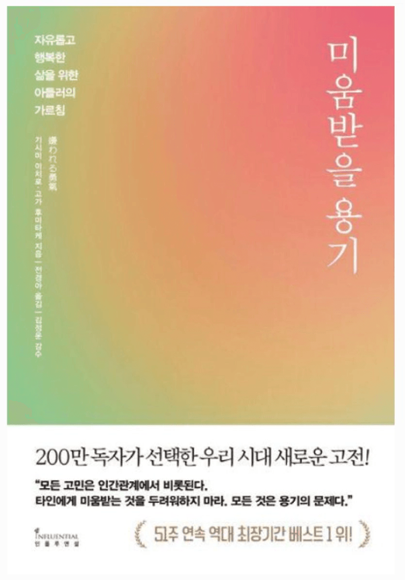 저는 미움받을 용기 읽어봤는데 왜 일하는가? 라는 책도 결이 비슷한가 보아요? 미움받을용기를 읽고 미움받아도 된다. 생각을 갖고 마음이 편하게 된책인데 담이팝님이 읽으신 책도 어떨지 궁금하네요 ㅎㅎ 책읽고 후기까지 쓰느라 수고하셨습니다