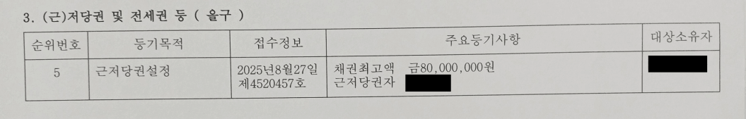 매수하는 집에 근저당설정 8천만 원을 하고 매수하게 되었습니다