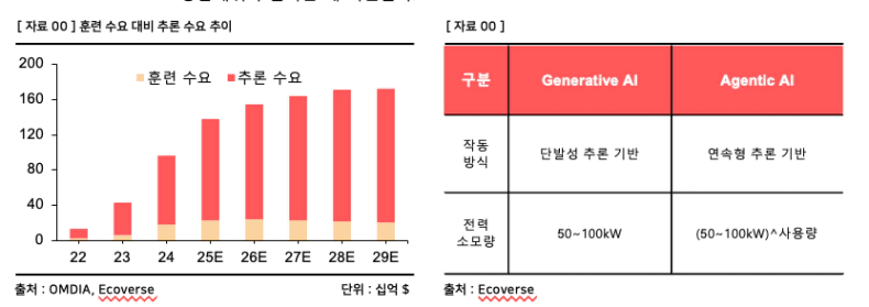 AI 모델을 실제 서비스에 적용하고 활용하는 사례가 많아짐에 따라, 25년 AI 반도체 시장에서 학습용 칩 비중이 약 22%, 추론용 칩 비중이 약 78%를 차지했다. 이는 현재 AI 산업이 ‘훈련’ 중심에서 ‘추론'시장, 즉 Agentic AI로 빠르게 이동하고 있다는 것을 방증한다.