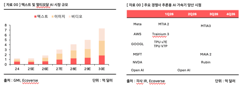 Agentic AI 시대로 접어들며 효율적 비용관리가 대두된 상황에서, 26년부터 주요 경쟁사들은 본격적인 추론용 AI 가속기를 출시할 예정이다. 이는 비용 절감을 넘어, 빠르게 성장하는 추론 시장에서 필수적인 실시간성과 연산 효율성을 확보하기 위한 전략이다.