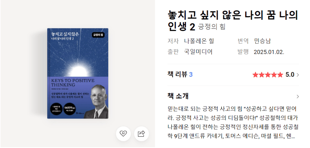 제목/저자 : 놓치고 싶지 않은 나의 꿈 나의 인생2 긍정의 힘/나폴레온 힐
