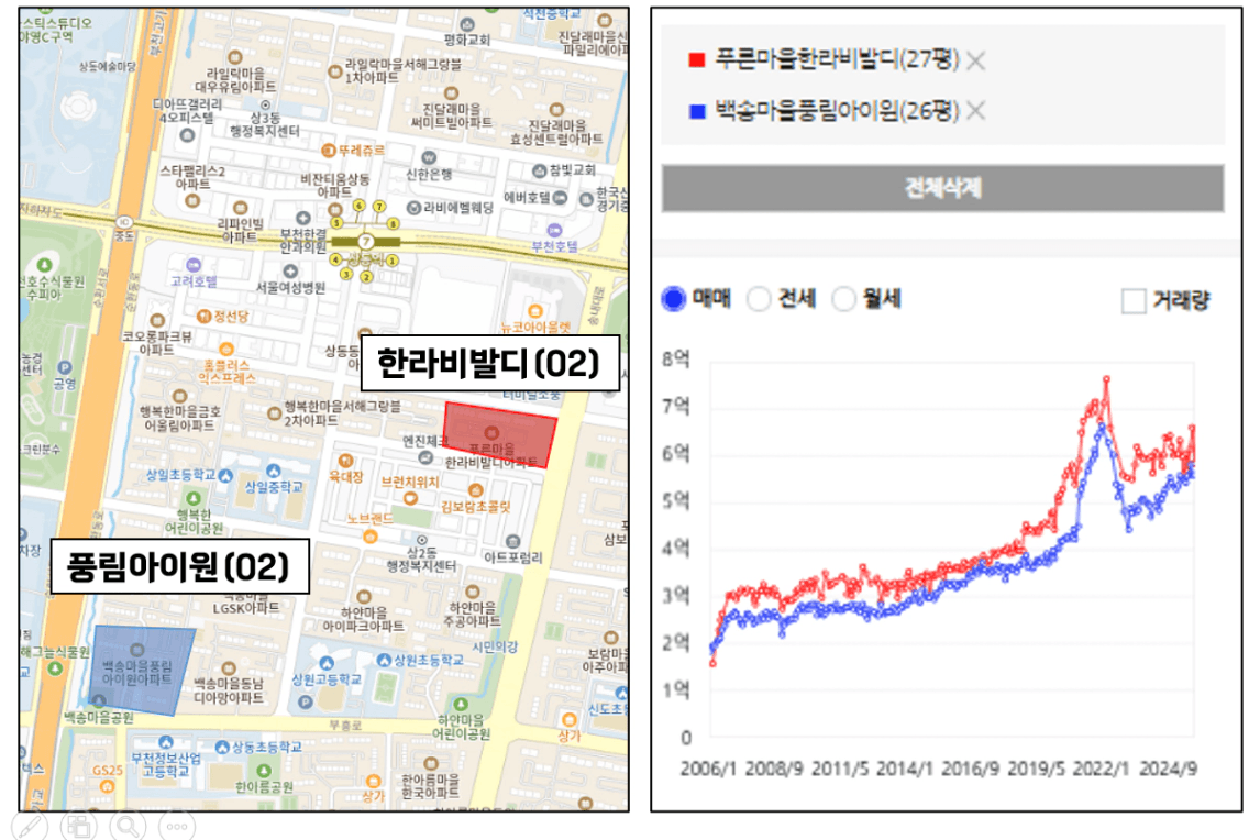 같은 상동의 환경이고 연식도 같아 상품성, 환경의 변수가 없습니다.