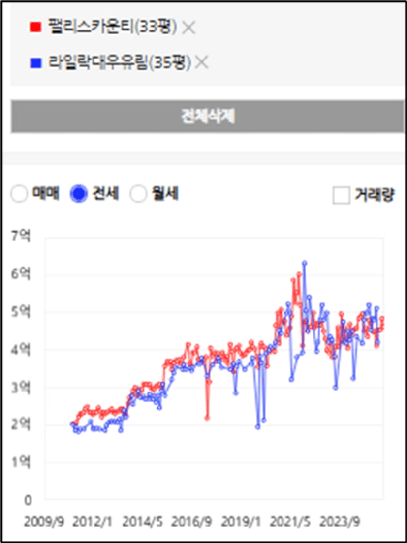 아, 팰리스카운티는 연식이 지날수록 땅의 가치가 적어 선호도가 빠지는구나