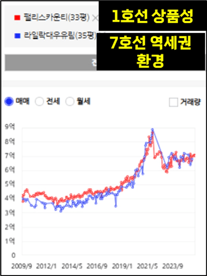 강남과 접근성이 좋은 7호선 주변을 더 선호하기에