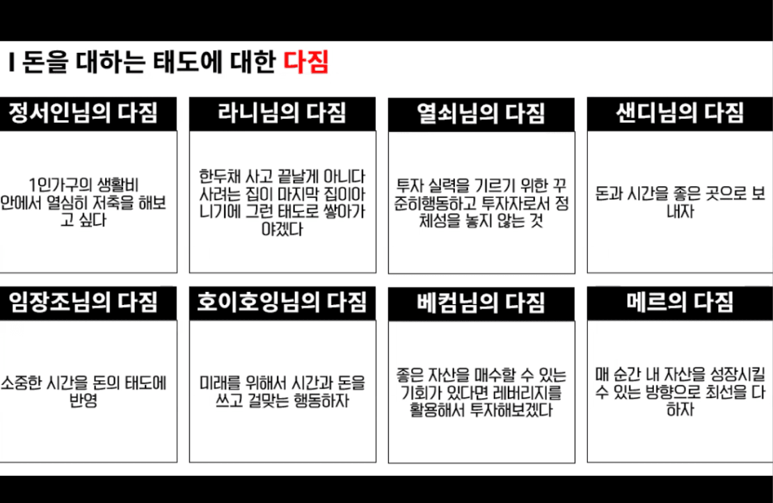 마지막 발제문은 각자 어떻게 돈을 대하는지에 대한 이야기를 나눴습니다.