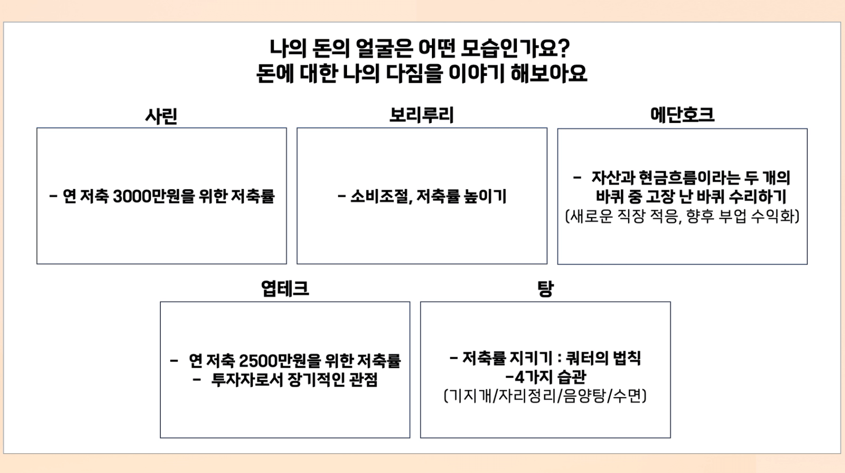 모두의 투자경험과 원칙을 들을 수 있었습니다.