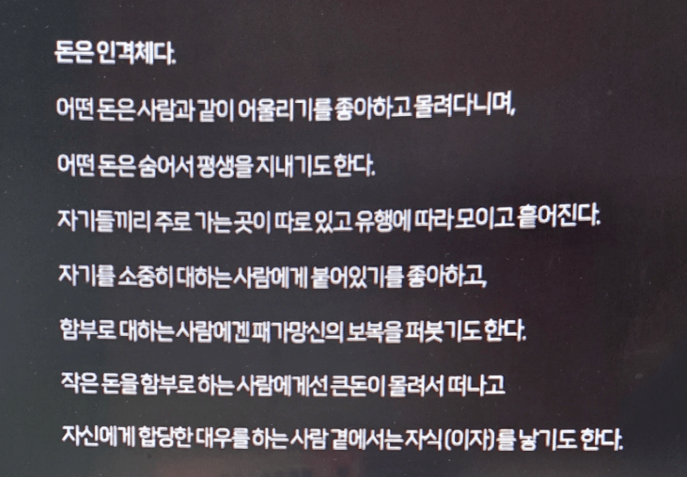 마지막으로 김승호 회장님의『돈의 속성』에서 나온 구절로 마무리하도록 하겠습니다.