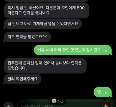 문제는 여기서부터였습니다. 가계약 문자를 쓰는 과정에서 여러 부분이 실수로 이어질 뻔했습니다.