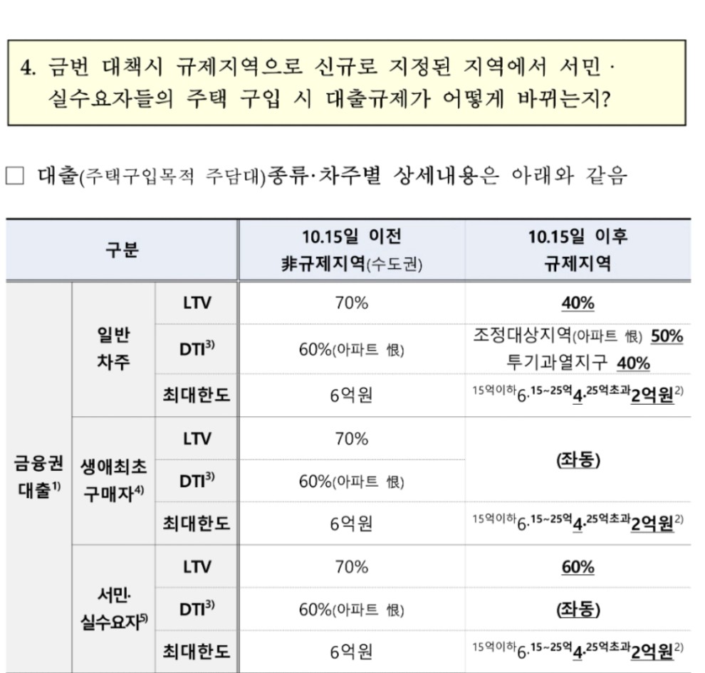 또 찾아보니 금융위원회의 대출수요관리방향으로 10.15 이후 내용에 관해 헷갈리는 내용이 있어 질문드려봅니다.