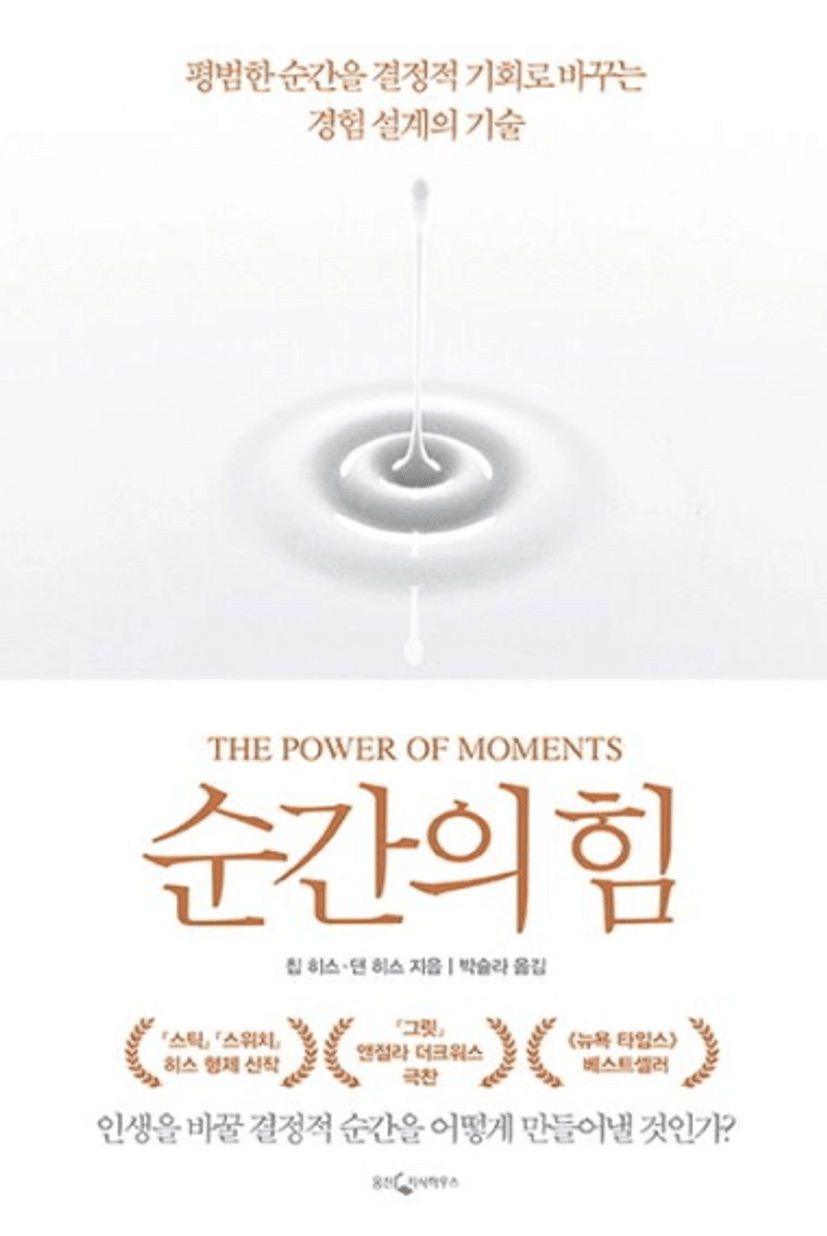 오랫동안 찰나의 경험이 사람을 어떻게 각성시키고, 고양시키며, 변화시키는지에 대해 주목하며 《스틱》으로 매력적인 메시지 만드는 법을, 《스위치》로 변화를 일으키는 구조를 밝혀냈던 조직행동론 전문가 칩 히스, 세계 500대 CEO들의 리더십 멘토 댄 히스 형제가 변화의 순간 그 자체라는 화두를 다룬 『순간의 힘』으로 돌아왔다. 우리는 인생의 모든 순간에 의미 부여를 하진 않지만, 삶의 방향을 바꾸는 중요한 순간은 따로 있다는 것을 알고 있다. 하지만 대부분은 그 순간을 기다리기만 할 뿐 적극적으로 이끌어낼 생각은 하지 않는다.