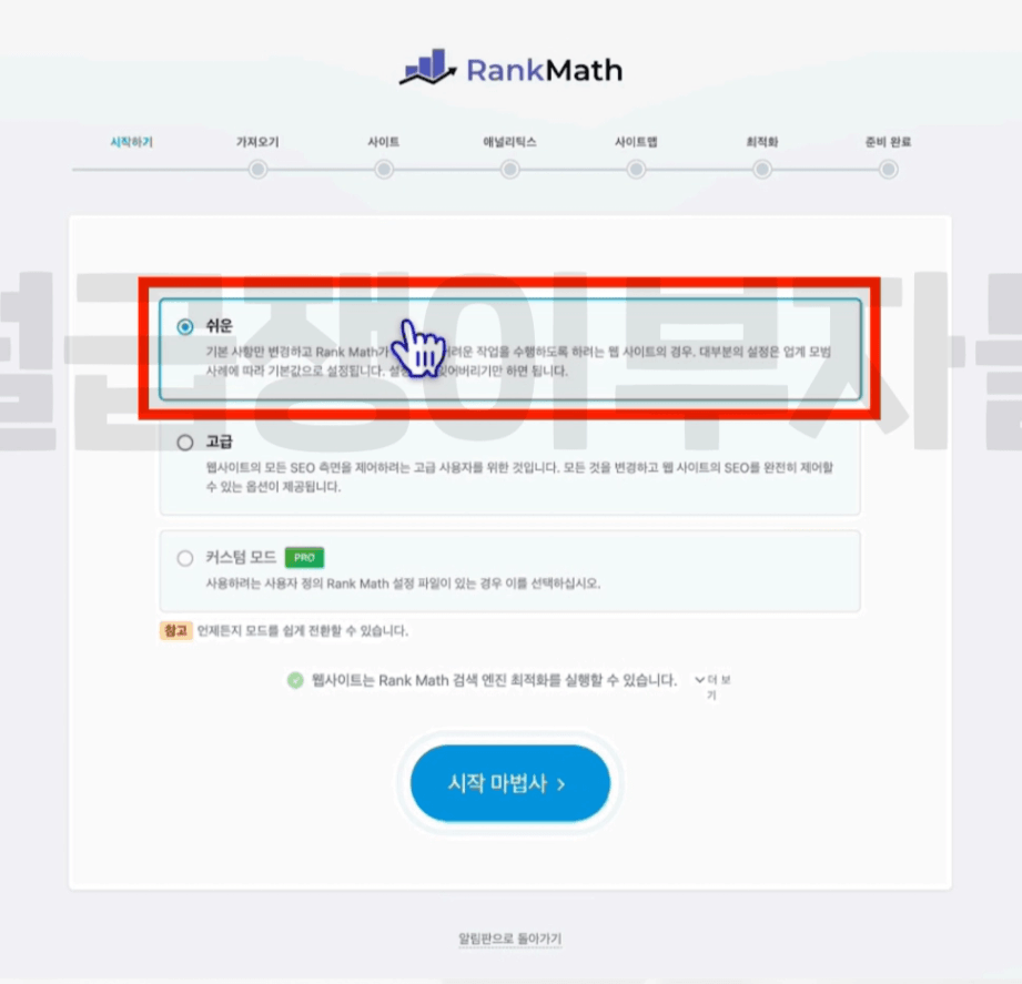 네 ㅎㅎ 큰 상관 없습니다~ 그럼에도 불구하고 변경하는 방법을 알려드리자면 그리고 rankmath 누르시면 세번째 탭에 setup wizard가 보이는데 여기서 설정하실 수 있습니다~