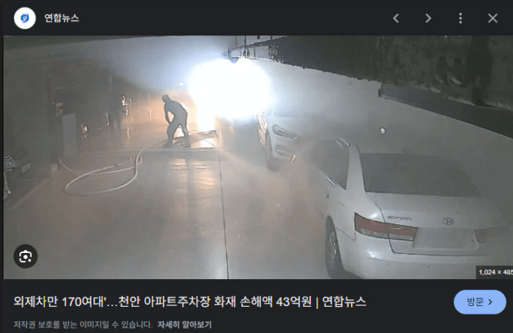 예시로 천안 21년도에 신불당 아파트 지하주차장에서 화제로 외제차가 170대가 전손되는 뉴스가 뜨면서