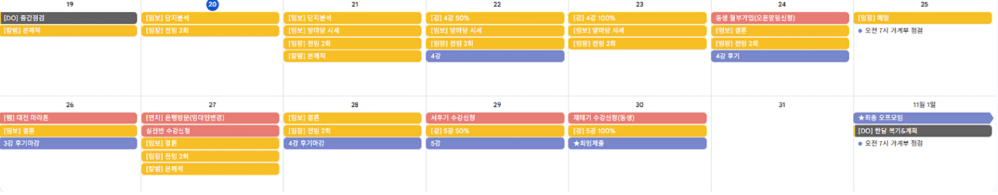- 개선할점: 단지분석 빨리 끝내고 시세트래킹, 앞마당 결론내기에 더 시간을 많이 할애하자. 이번달 원씽!!!