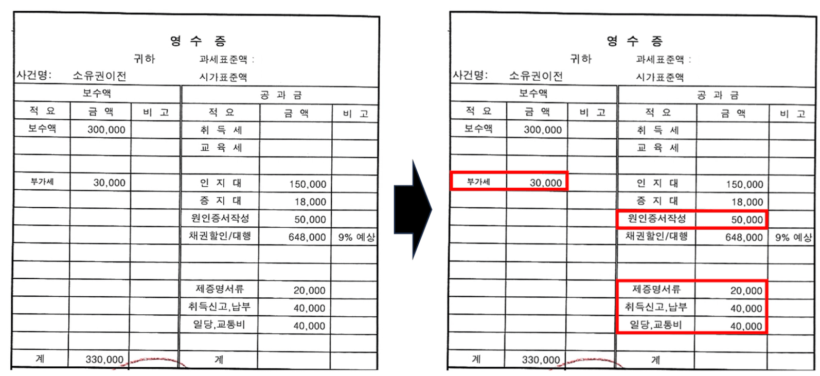 보수료 외에 부대비용과 부가세를 추가하셨고,