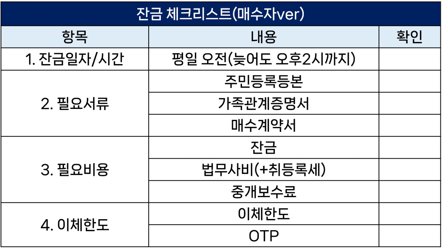 잔금일날 매수자는 총 3가지의 서류가 필요합니다.