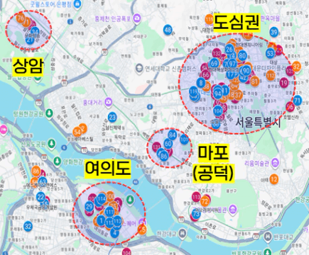 대표적으로 도심권 직장과 마포 공덕지구, 여의도를 잇는 직장들을 품고 있는 아현뉴타운과 북아현뉴타운을 생각해볼 수 있습니다.