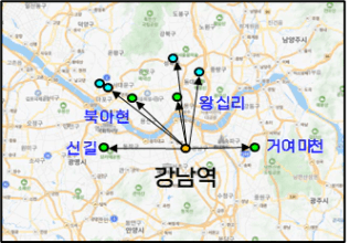 서울은 기본적으로 한강을 중심으로 위에는 ‘강북’, 아래로는 ‘강남’으로 나뉘는데요. 그중에서도 우리나라의 경제와 상업의 중심지 역할을 하는 ‘강남’을 중심으로 물리적으로 가까운 곳에 위치할 수록 땅의 가치가 높다는 것을 알 수 있습니다. 따라서 땅의 가치를 직관적으로 쉽게 알아보는 방법은 ‘강남역’을 중심으로 직선거리로 얼마나 가까운 곳에 뉴타운이 위치해 있는지를 보시면 됩니다.