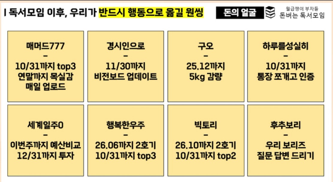 주식, 아파트 등 다양한 경험이 많으신 조원분들과 튜터님을 만나 좀 더 배울 수 있어서 감사합니다.