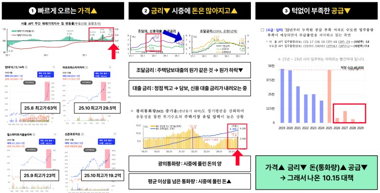 👨🏻 지금은 계속해서 집 가격이 오르고 금리는 내리고 돈은 많아지고 공급은 부족한 상황이야. 이런 상황이라면 당연히 집 값이 계속 급격히 오르기 때문에 정부에서는 새로운 대책을 낸거지. 과거에도 계속해서 이런 흐름이 반복되고 있어.