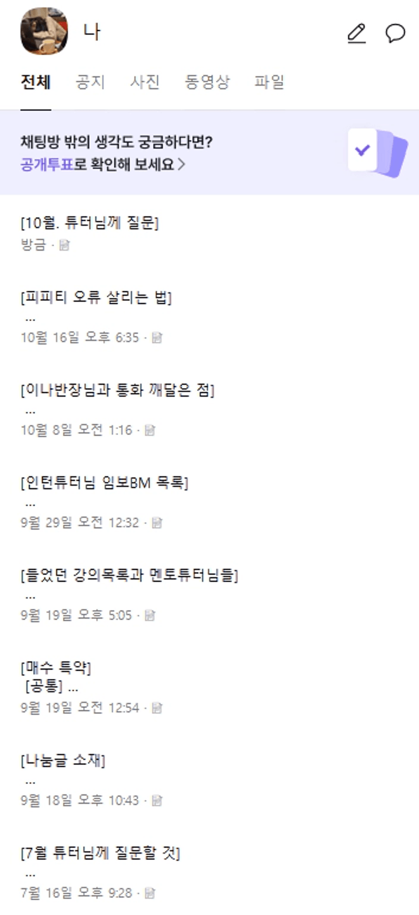 카톡 <게시판>에는 휘발되지 않길 바라는 글들을 모아둡니다