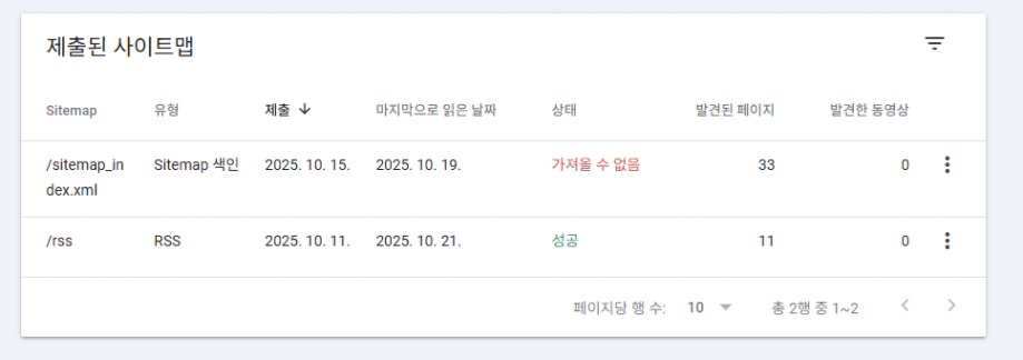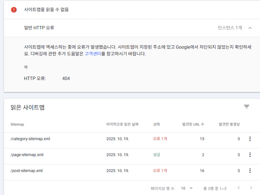 사이트맵 상태가 가져올 수 없음으로 되어 있습니다.