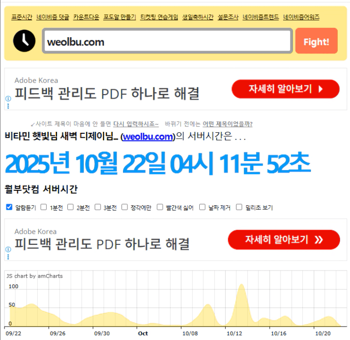 서버시간 사이트에 월부닷컴 주소를 넣고