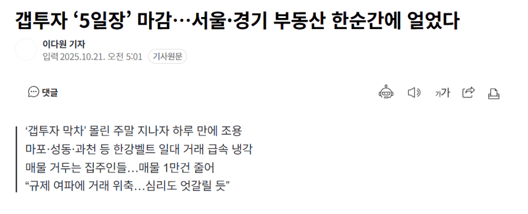 물론 최근 ‘5일장 기간’ 세낀 매물이 정말 순식간에 사라지면서 매매물량 감소에 큰 영향을 주었습니다. 실제로 전화해보거나 현장, 기사 등을 통해서 분위기를 읽어보면 “내년치 벌 수 있는 돈을 다 벌었다”식의 반응도 있을 정도로 맹렬히 거래가 되기도 했습니다.