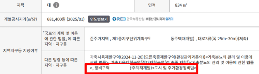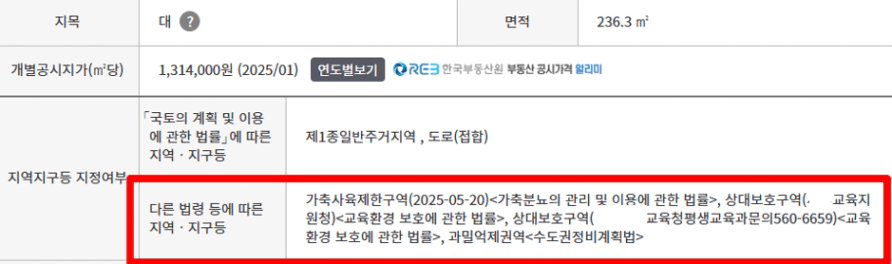 ‘다른 법령 등에 따른 지역, 지구’ 항목에