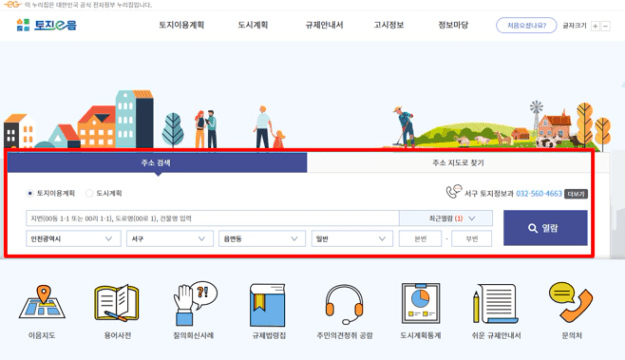 먼저 토지이음에 주소를 입력하고 열람버튼을 누릅니다.