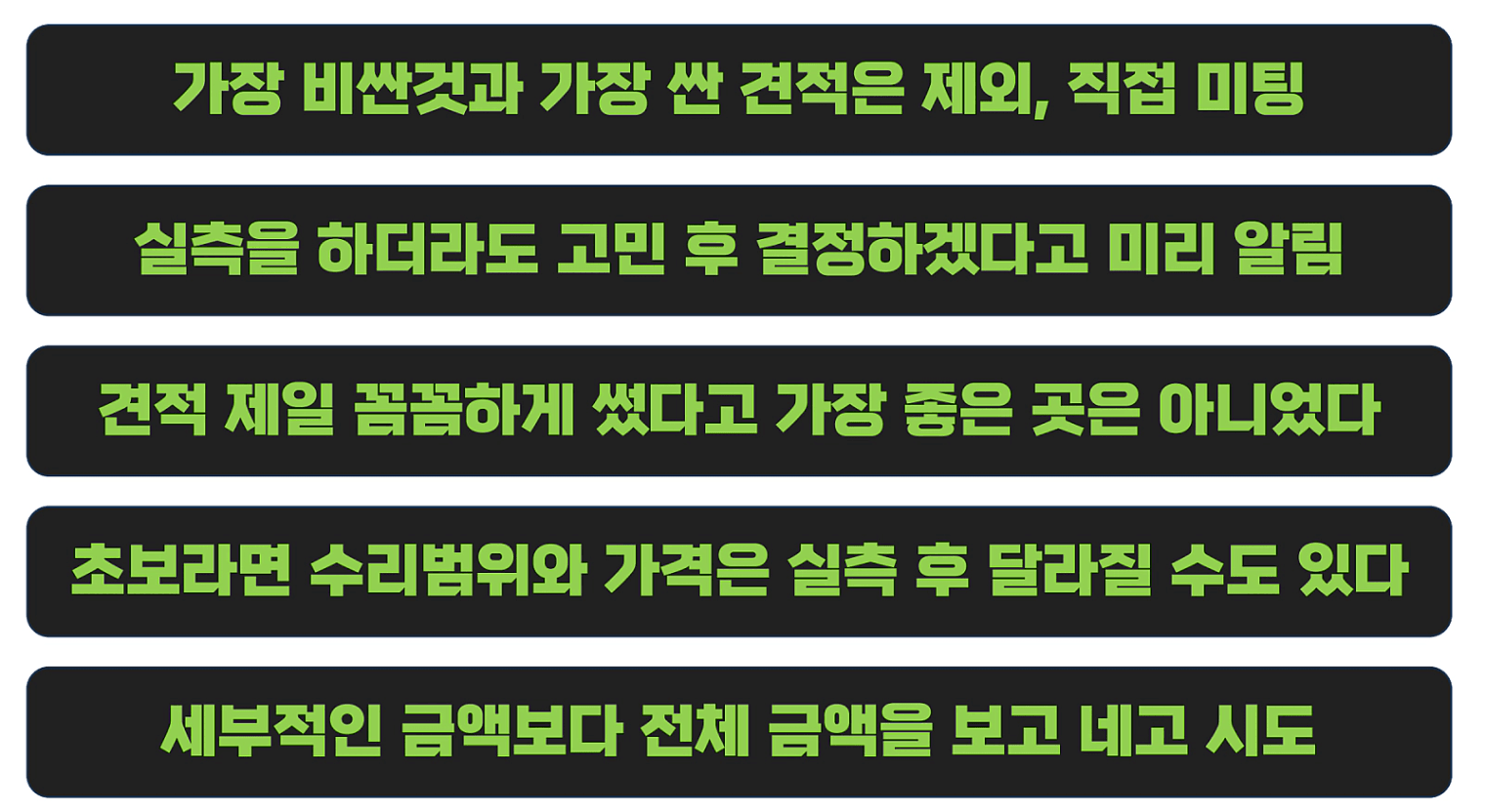 -> 견적받은 업체 연락해서 최종확인, 실측요청