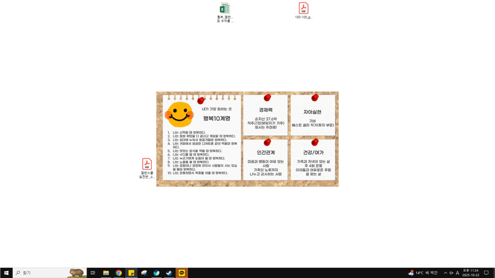 : 딱 한가지 실천하고 싶은 건 현재 내가 가고자 하는 목표가 지금 바탕화면에 없습니다.