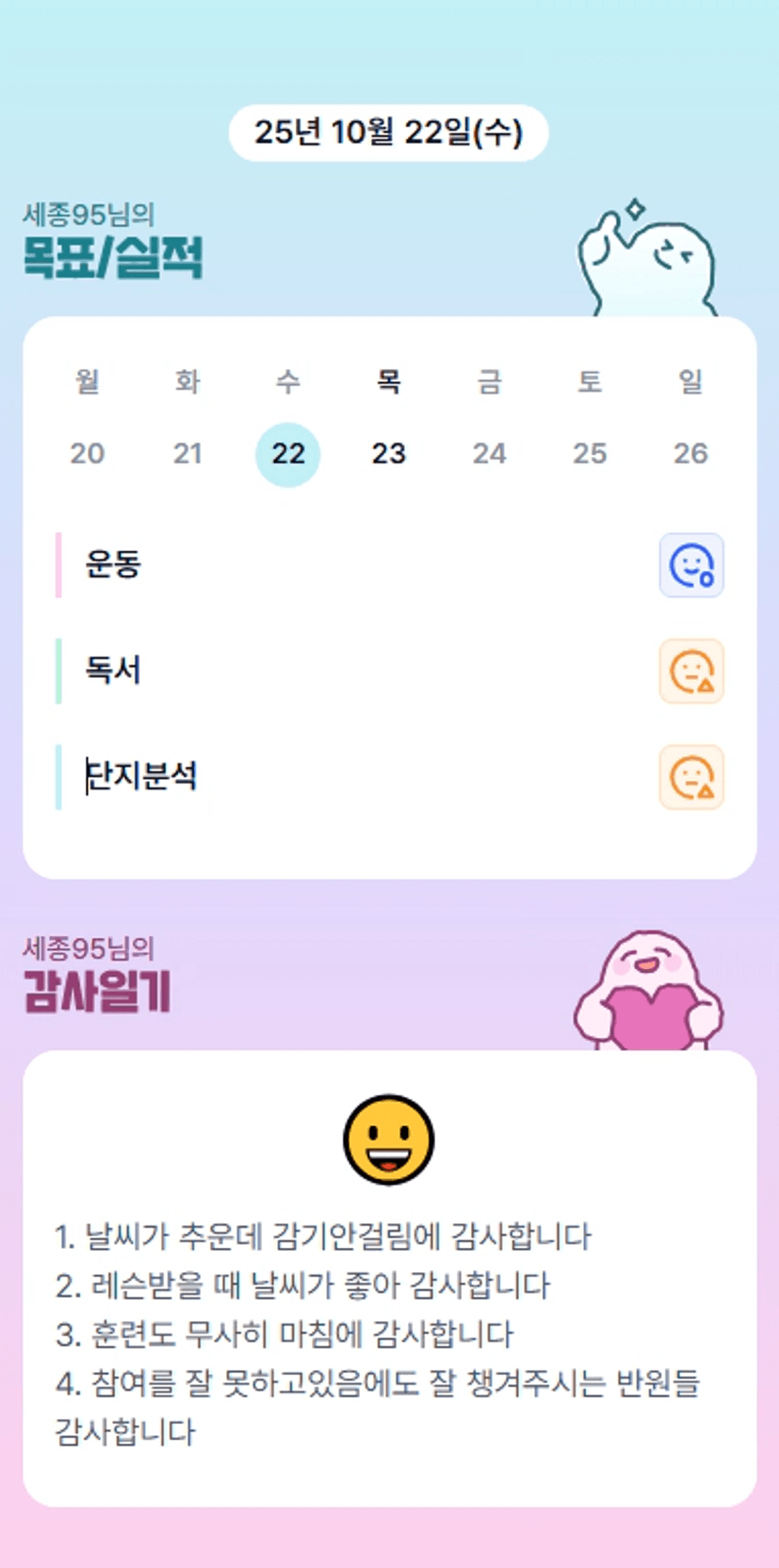진짜 꾸준한 운동 존경스러워요 세종님!!