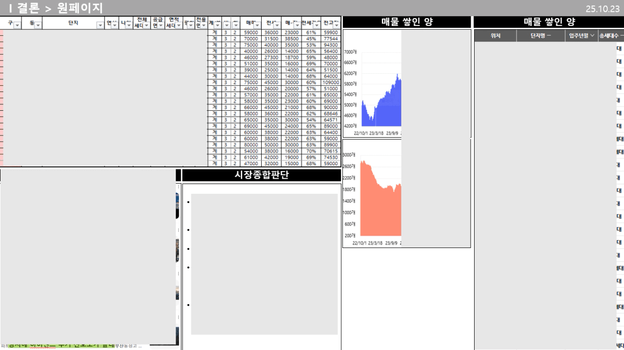지방은 공급이 튀어나올 수 있어 지역 상황 정리를 매달 해야 하며, 원페이지에는 공급과 시장상황 두가지 테마로 정리